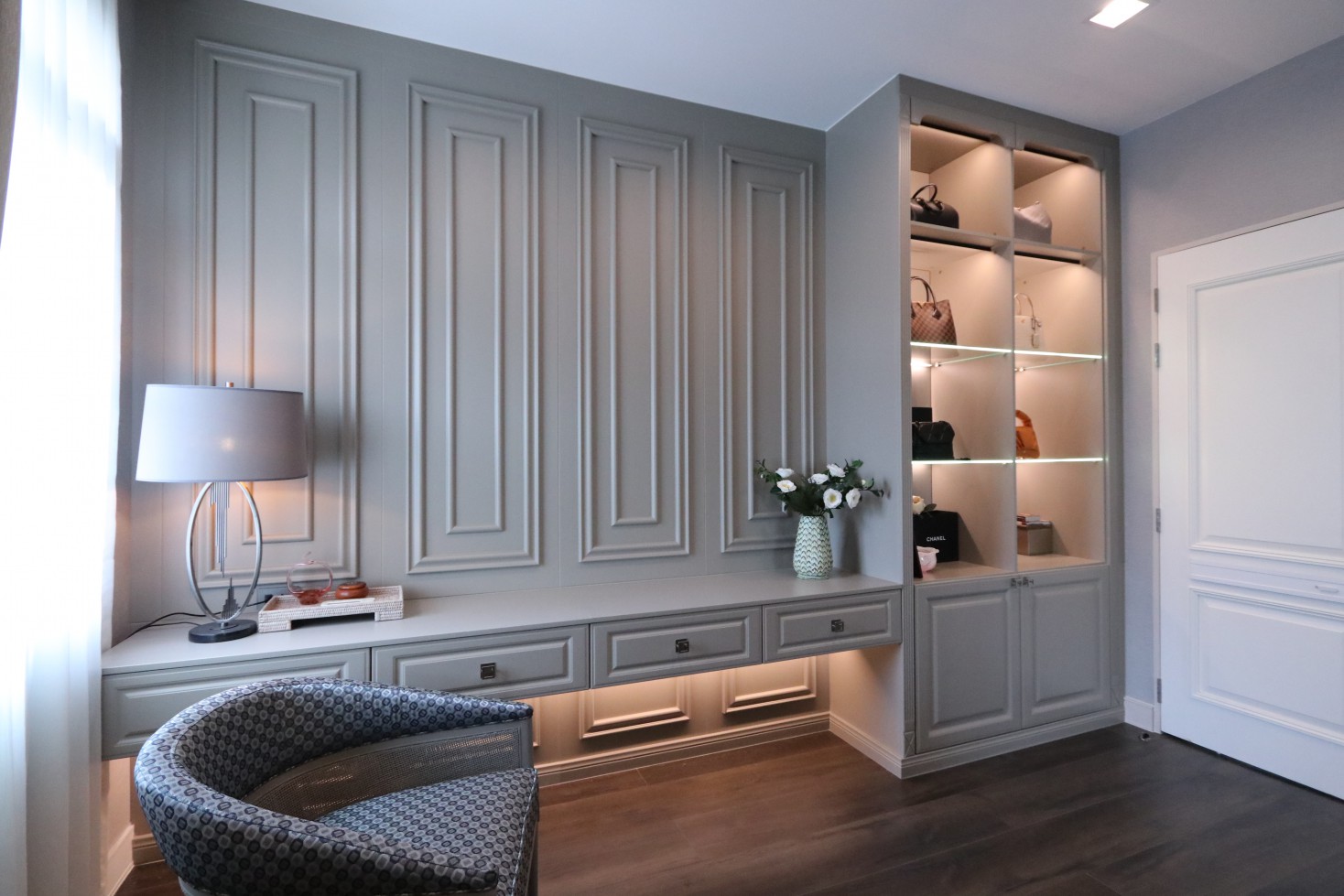 ผลงานการออกแบบภายในและติดตั้ง ชุดเฟอร์นิเจอร์ บิ้วบิน Kuhlamnn by Grata สไตล์ Luxury classic ด้วยชุดผนังตกแต่ง วัสดุสีพ่นด้าน (Matt color) ผ่านการพ่นและอบสีจากโรงงาน มาตราฐาน เยอรมัน และชุดตู้โชว์ ประกอบไปด้วย ห้อง Living room และ Bed room โดยการออกแบบชิ้นนี้เลือกใช้สีโทนสว่างสีขาวและสีเบจ มาช่วยเพิ่มความคลาสลิก การันตีมาตรฐาน เยอรมัน