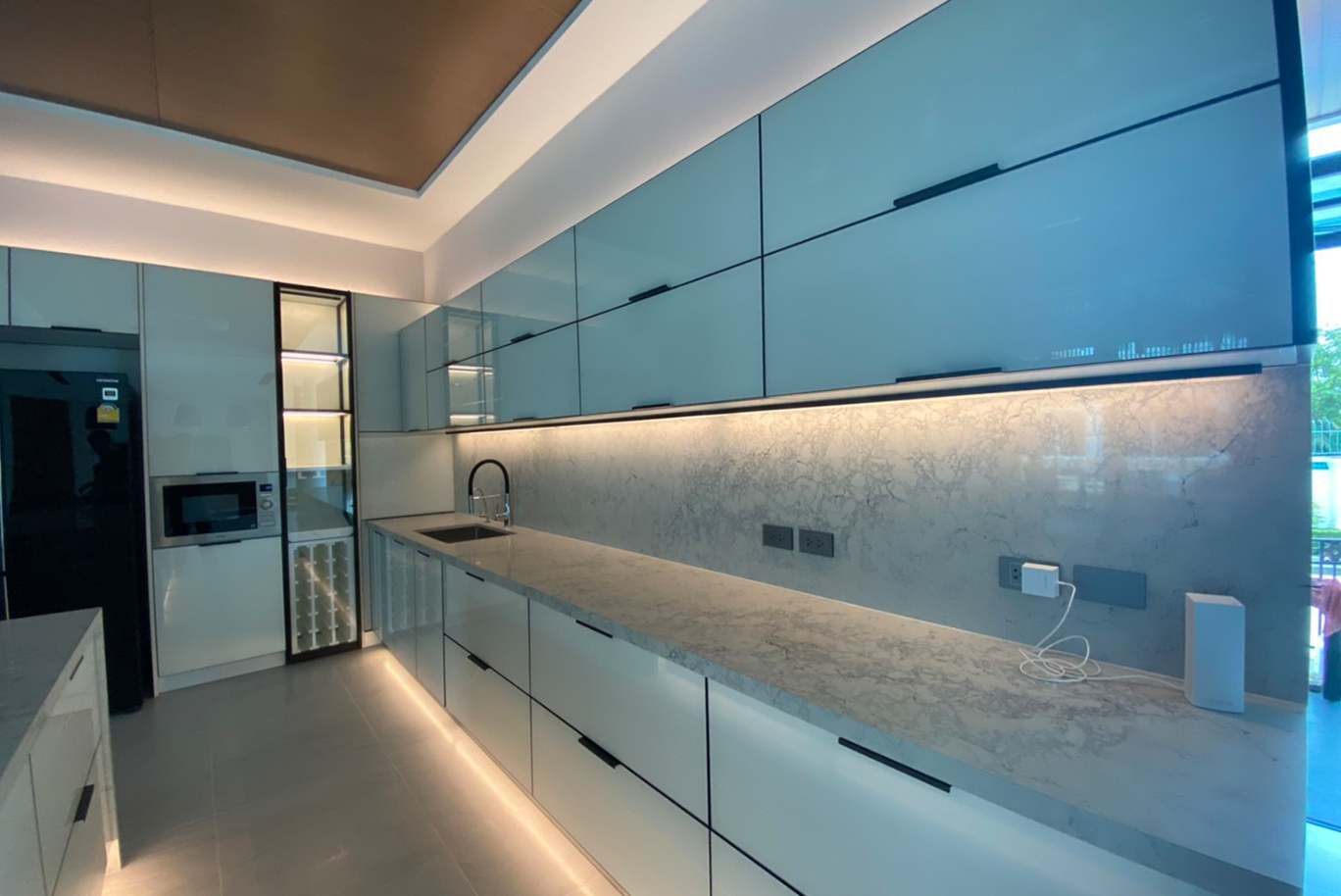 ชุดครัว รุ่น Brazil ความพิเศษของรุ่นนี้คือ หน้าบานแบบกระจกเซาะร่อง และเป็นครั้งแรกในประเทศไทย ที่นำกระจกแบบนี้มาทำเป็นดีไซน์ ชุดครัว