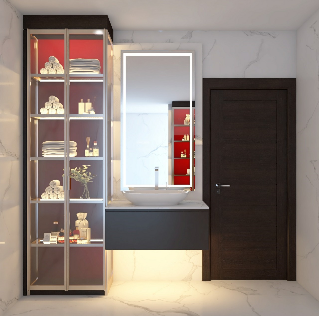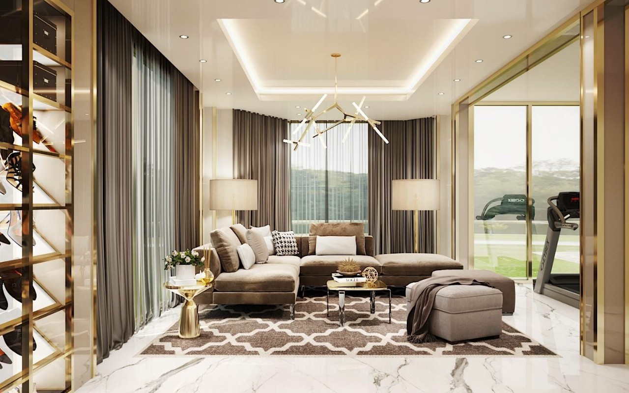 ผลงานออกแบบตกแต่งภายใน พื้นที่ 300 ตารางเมตร concept โทนขาว ดำ เทา และทอง โดยชุด Living room ใช้ผนังตกแต่งรัดด้วยขอบอลูมีเนียมสีทอง และโครงตู้ อลูมีเนียม ช็อกโกแล๊ต ระหว่างทางเดินออกจากบ้าน ใช้ตู้รองเท้า โครงอลูมีเนียมสีทอง , Walk in closet และชุดครัว