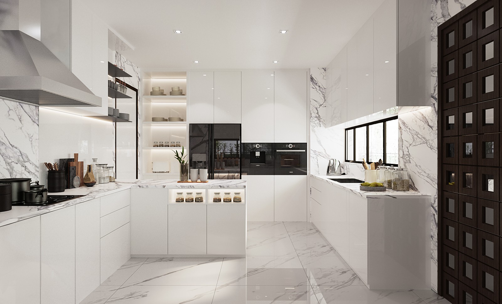 บ้านหรูระดับไฮคลาสขนาดมากกว่า 550 ตารางเมตร ที่ได้แรงบันดาลใจจากไลฟ์สไตล์ของเจ้าของบ้าน โทนสีของบ้านเน้นไปในธีมสีเทา ขาว และดำ เว้นเฉพาะห้องนอนที่ต้องการความเป็นส่วนตัว แตกต่างด้วยโทนสีน้ำตาลไม้ สัมผัสได้ถึงธรรมชาติ ภายในบ้านประกอบด้วยห้องต่าง ๆ มากมาย อาทิ ห้องเปียโน ห้องนั่งเล่น ห้องครัว ห้องนอน ห้องพระ ห้องทำงาน ห้องออกกำลังกาย Pantry+Mini Bar และ Walk In Closet ตกแต่งสไตล์โมเดิร์นได้อย่างกลมกลืน ไฮไลท์อยู่ที่ทุกพื้นที่ถูกตกแต่งด้วยงานหินนำเข้า เพิ่มความหรูหราด้วยกระจก และเฟอร์นิเจอร์สีมันวาว พร้อมชื่นชมงานศิลปะจากไฟประดับ ซึ่งสร้างสีสันและความตื่นตาตื่นใจให้กับการตกแต่งในครั้งนี้ไม่น้อย
