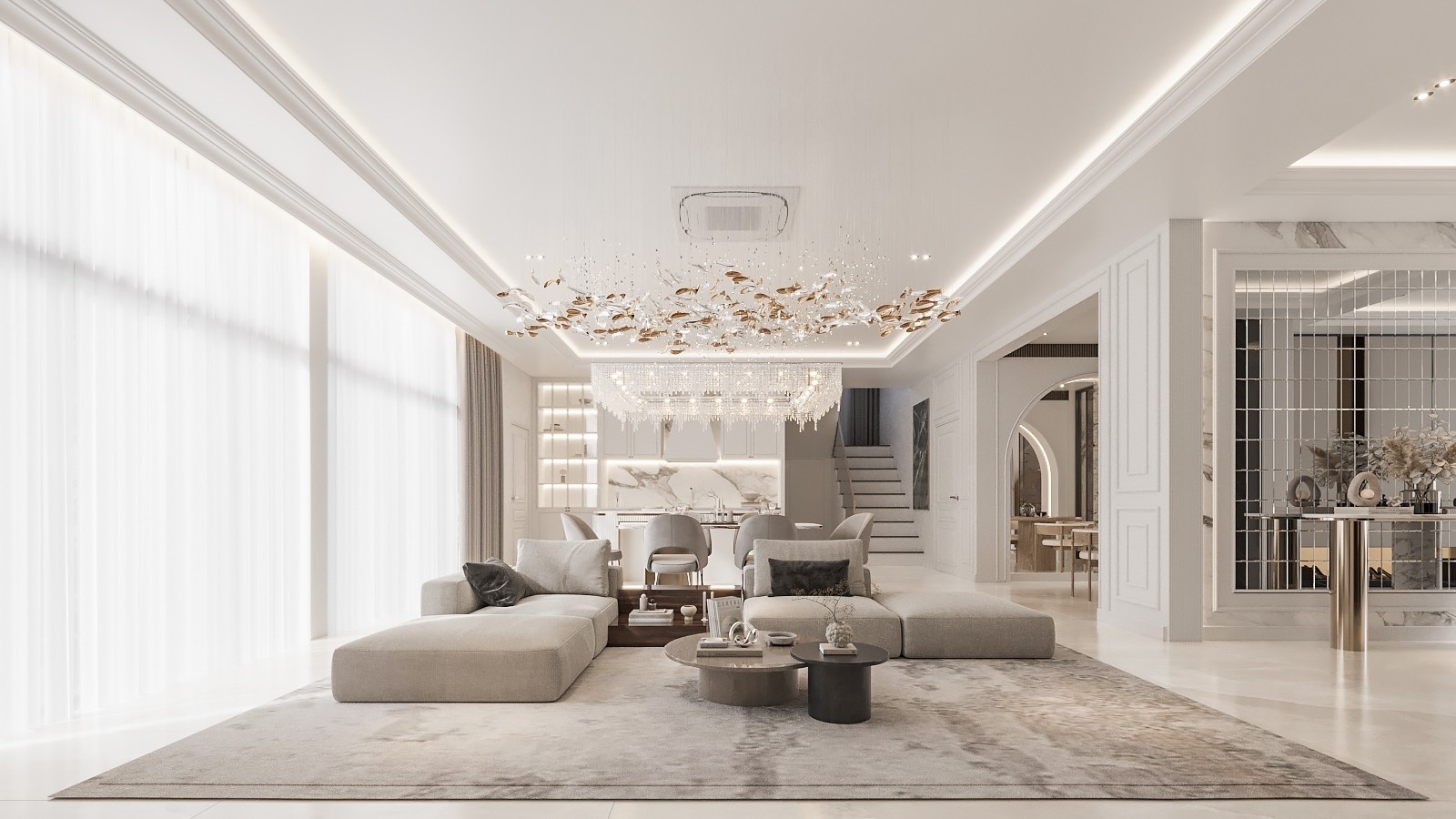 ผลงานการออกแบบภายในบ้านในโครงการ จังหวัดชลบุรี พื้นที่บิ้วอิน 350 ตารางเมตร คอนเซ็ปภายในบ้านเป็นสไตล์ Modern & Classic ผสมรวมกันได้อย่างลงตัว โดยโซนห้องรับแขก จะเน้นโทนที่มีความเป็นสีขาว ผนังทีวีใส่เป็นลายหินนำเข้า รัดด้วยคิ้วสแตนเลสสีทอง พร้อมตู้โชว์ด้านข้าง ใช้โทนสีไม้ธรรมชาติ ซ่อนไฟ LED จุดไฮไลท์ คือ โซนห้องเด็ก เลือกเล่นสีสดใส นำสีส้ม มาใส่เพิ่มความน่ารักสนใส ส่วนผนังตกแต่งภายในห้อง ใช้เทคนิค ผนังปริ้นลายต้นไม้ เพิ่มความเป็นสีเขียวธรรมชาติเพิ่มเข้าไป