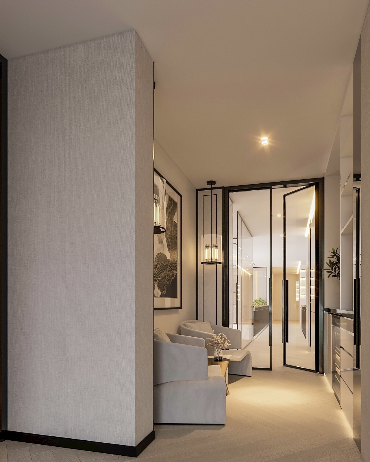 คฤหาสน์สุดหรู กราเทียได้สังสรรค์ งานออกแบบตกแต่งภายใน บ้านขนาดใหญ่ ที่มีพื้นที่ออกแบบตกแต่งภายใน มากกว่า 1,200 ตารางเมตร ด้วยความต่างที่ตกแต่งให้เป็นคฤหาสน์สุดหรู ด้วยดีไซน์ Super Modern Luxury ผสมดีไซน์ คลาสสิค ด้วยชุดผนังตกแต่ง ที่มีลวดลายไม่เยอะมาก ที่มีดีไซน์ โทนสีขาว ทอง และสีดำ มาตัดกัน ให้มีความรู้สึกถึงความสง่างาม ในทุกๆ มุมมองภายในห้องรับแขก เสริมด้วยโคมไฟระย้า แบบมีคริสตัลนำเข้า และยังเลือกใช้เฟอร์นิเจอร์ ลอยตัว ที่มีดีไซน์ โทนสีเทาให้กลมกลืน จะเห็นได้ว่าการวางคอนเซ็ปต์ของงานนี้ ใช้สไตล์โมเดิร์น ลักซูรี่ นี้ได้อย่างลงตัว